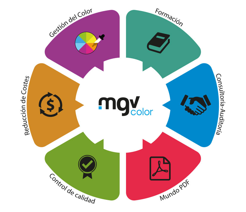 MGVColor nació en el año 1990, con una vocación de servicio al mundo gráfico. Nos planteamos en su día el reto de dar soluciones en el mundo -entonces tan complejo y sin ninguna normativa- del color.  Abarcamos desde entonces mercados diferentes y con complejidades distintas, pero todos con un NEXO COMÚN: el control y predicción del color.